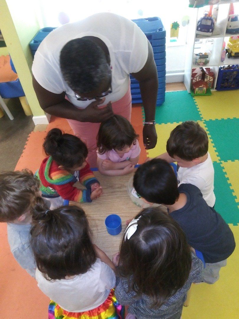 Math concepts and letter sounds are introduced in games, art, and activities while still emphasizing learning through play. This is also a time for forming friendships, learning about problem solving, and developing self-help skills. When age ready, this group also participates in the Heggerty Phonemic Awareness curriculum, a fast paced, fun program that introduces the building blocks for literacy.